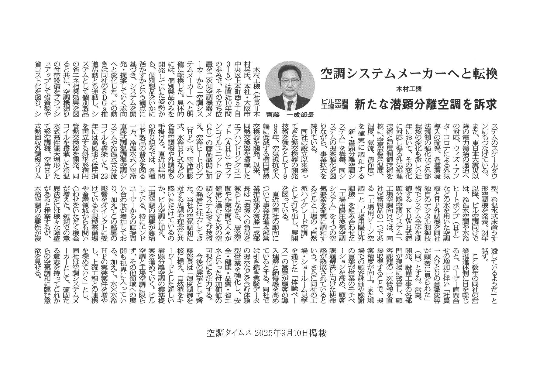 空調タイムス 2025年9月10日に掲載されました。