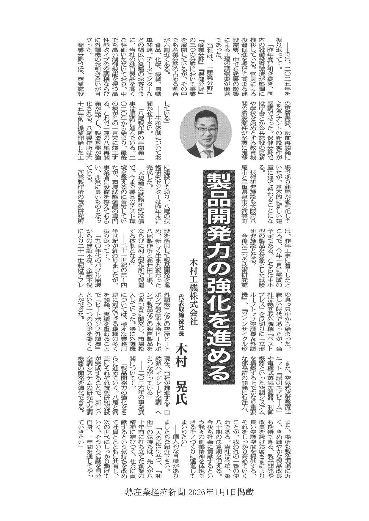 熱産業経済新聞 2026年1月1日に掲載されました。