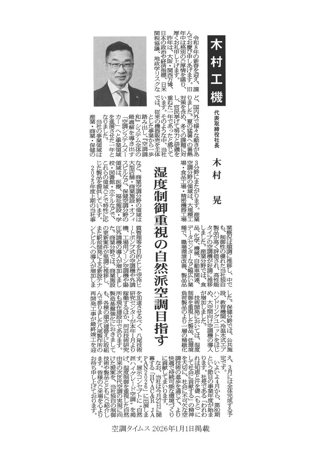 空調タイムス 2026年1月1日に掲載されました。
