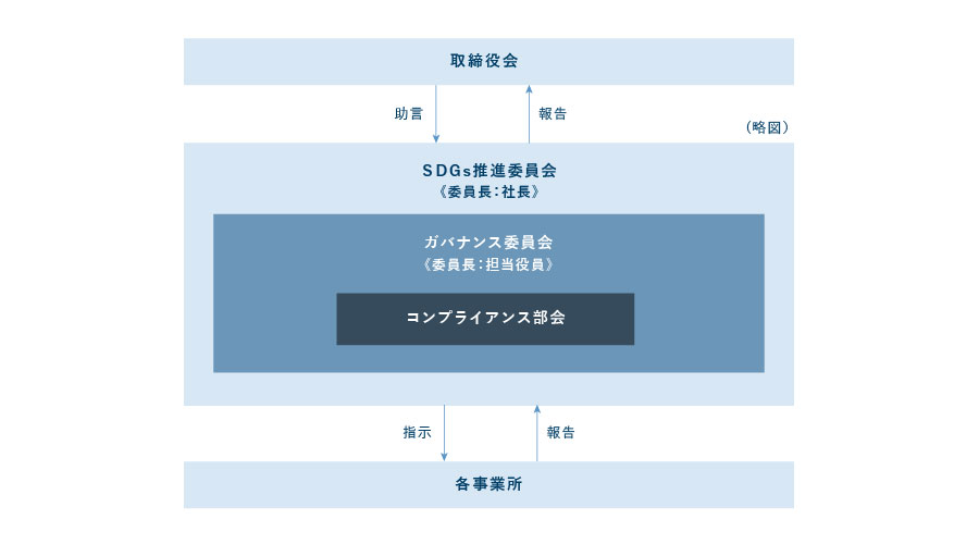また、その活動は毎四半期に開催されるSDGs推進委員会にて報告・協議され、その結果は取締役会に報告されます。